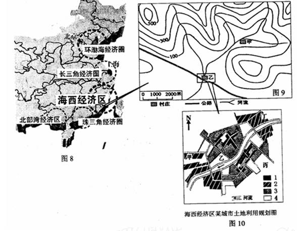 (4)请你根据图9中的信息,谈谈该区域如何因地制宜发展经济。(10分)
