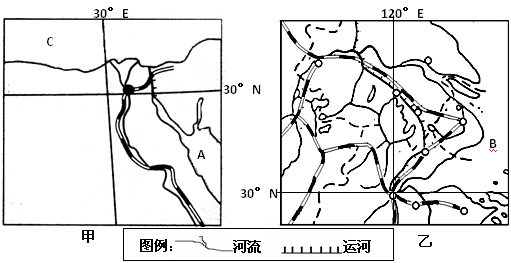(2)本题考查影响农业区位的因素。影响农业的区位因素主要有自然条件、社会经济条件和技术条件。自然条件包括气候、地形、土壤、水源等。两者拥有的共同农作物是棉花。甲区为埃及,为热带沙漠气候。优势条件是光热充足,冬季温和;气候干旱,昼夜温差大,利于棉花的生长;限制性条件是水源(降水少)。