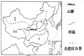 本题解析:试题分析:小题1:根据图示我国三大自然区的划分,Ⅰ、Ⅱ区域的分界线为400mm年等降水量线;Ⅱ、Ⅲ区域的分界线为昆仑山—阿尔金山—祁连山脉;Ⅰ、Ⅲ区域的分界线为3000米等高线,故判断我国三大自然区划分的主要依据是气候和地形地貌。