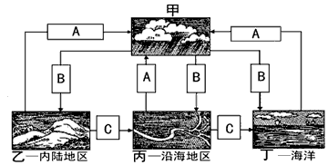 (2)图中丁→甲→丙→丁形成的水循环类型是________循环,该循环的动力主要来自________能。