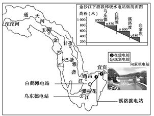 【小题1】金沙江干流主要流经我国地势第一级阶梯向第二级阶梯的过渡处,河流落差大,水能资源丰富,适于水电梯级开发。