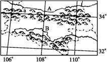 本题解析:小题1:根据经纬度可确定a山脉是秦岭,其南北两侧因热量的差异形成了不同的自然带,南侧是亚热带常绿阔叶林带,北侧是温带落叶阔叶林带。