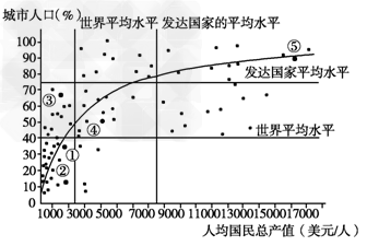 (3)材料2中能表示中国城市化水平与经济发展关系的点是_____________________。