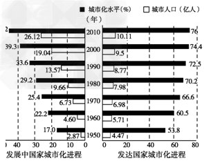 (1)结合材料1比较发达国家和发展中国家城市化的主要异同。