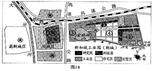 1、综合题 (12分)随着经济社会的发展,某市合并周边城镇,新建成东部新加坡工业园和西部高新园两大新城区,发展成为面积130多平方千米,人口达221万的特大型城市