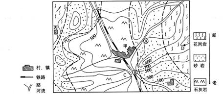 3、单选题 读某区域等高线和地层分布示意图,完成下列各题。