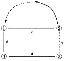 D、d处洋流流向为①→④