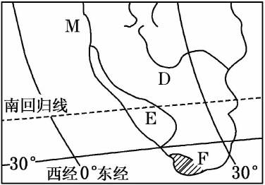 小题1:E地为纳米市沙漠,它沿非洲西南大西洋海岸延伸2100千米,该沙漠最宽处达160千米,而最狭处只有10千米,其沿海岸线延伸的主要原因是??? (? )