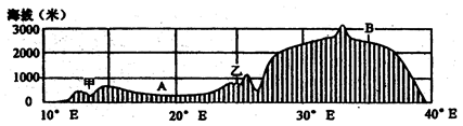 5、单选题 读“某大洲沿南纬5°地形剖面图”,回答各题。