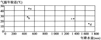 本题解析:本题考查读图分析能力和我国的气候与农业生产。小题1:根据年较差和降水量,a,b,c,d大致位于我国东北地区,华北地区,长江流域和珠江流域。