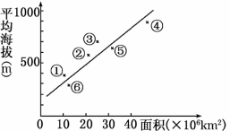 1、单选题  下图是除南极洲以外的各大洲面积与平均海拔示意图,据此回答l一3题。