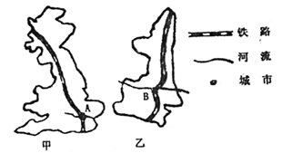 (5)乙图中B地所处的地形区是_______________,乙省会是__________________。