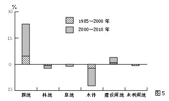 本题解析:小题1:根据图中信息可知,土地利用中耕地增加最多。西北地区干旱缺水,过度开垦导致土地荒漠化严重。选择A项。