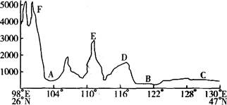1、综合题  30.下图为“我国沿某线地形剖面图”,读图回答气候、地形及农业类型等方面的问题。