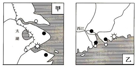 5、综合题 读我国两个三角洲图(下图),并回答下列问题。