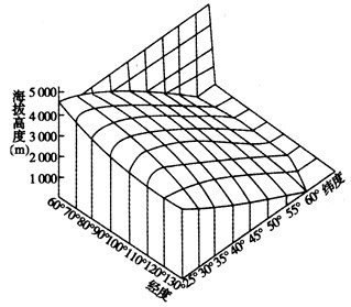 3、单选题 下图示意北半球某森林带分布上限海拔高度与经纬度的关系。据图回答1~2题。