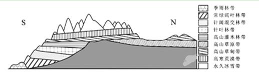 4、单选题 下图是珠穆朗玛峰地区南、北坡垂直自然带谱示意图。与北坡相比,南坡自然带丰富的原因是