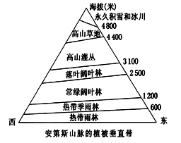 2、综合题 下图为安第斯山某段的植被垂直带示意图。读图回答下列问题。(26分)