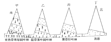 5、单选题 下图为“不同纬度山地垂直自然带分布示意图”。读图完成1—2题。