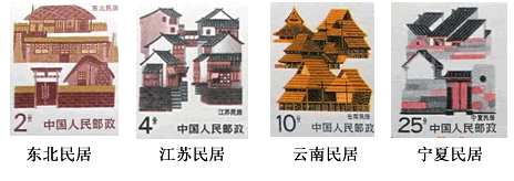 3、单选题 读“我国部分民居邮票图”,回答1~2题。