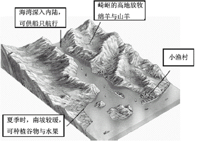 (1)根据图中提供的信息,判断该地最可能是下列哪一国家海岸地区的典型景观?