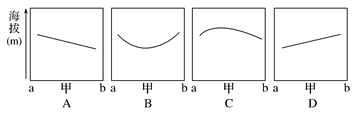 5、单选题 该图中与a、甲、b一线上空等压面的剖面线相符合的示意图为 ( )