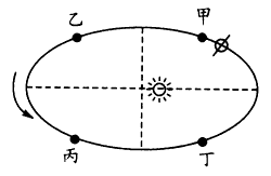 2、地球从甲处经乙、丙、丁回到甲公转一周(甲、乙、丙、丁之间等距),四段之间用时最少的是