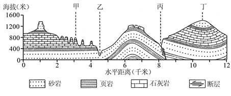 D.丁处是典型的背斜山