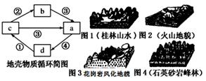1、单选题 读地壳物质循环简图、地貌景观图,回答问题。
