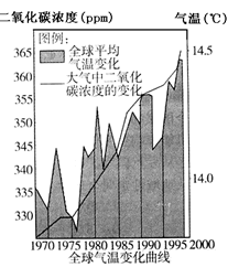 1、图中显示全球平均气温的变化与二氧化碳的变化大体上呈现出