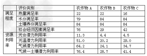 1、单选题 读我国某地区农业资源利用评价表(单位:%),回答1-3题