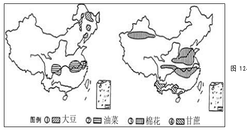 2、填空题 根据我国农业部2003年2月的《优势农产品区域布局规划》,四种农作物的优势生产区域如图12所示。读图并结合所学知识回答19—20题。
