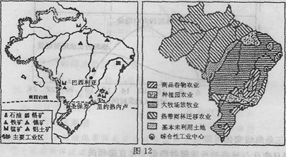 (3)煤炭等能源资源短缺是里约热内卢发展工业的限制性条件。请你提出因地制宜解决巴西能源短缺问题的合理化建议。(4分)