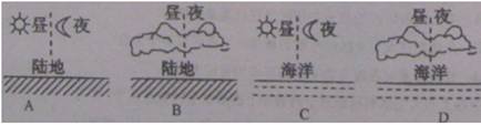 4、单选题 下列四幅图所示的情况中,昼夜温差最小的是