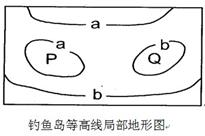 1.钓鱼岛是钓鱼岛列岛的主岛,是中国固有领土,位于中国东海, 在1:10000的钓鱼岛地图比例尺放大1倍后,下列说法正确的是2.在钓鱼岛等高线局部图中, 已知a>b,有关P、Q两处地形的正确叙述