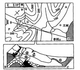 (2)沿着剖面线BC的地质剖面图中,①处形成浅谷的原因是??????????????????????????????????;
