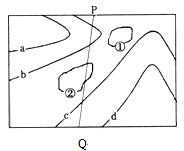 4、单选题 读等高线地形图(已知a<b<c<d),回答下列小题。