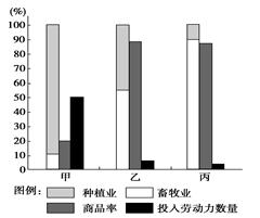 5、单选题 读“甲、乙、丙三个地区农业比较图”,完成问题。