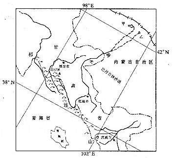 3、综合题 发源于祁连山的弱水经河西走廊,最终流人内蒙古自治区境内。下图为“河西走廊弱水流域简图”。读图回答下列问题。