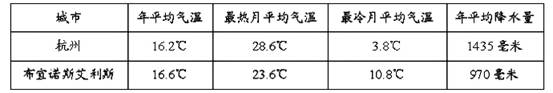 材料一?杭州与布宜诺斯艾利斯气候资料统计表?