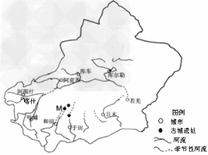 材料三:新疆南部地区主要城市及水系分布图