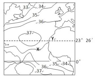 3、单选题 盐度是单位体积海水中含有可溶性盐类物质的多少。图为大西洋海水盐度分布(单位:‰),回答问题。