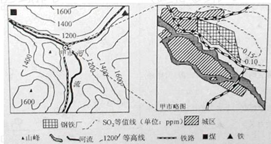 5、综合题 下图是甲市周边地区和甲市城市用地示意图,该市地处亚热带季风气候区,气候湿润多雾,森林植被茂密,矿产资源丰富。据此完成下列问题(14分)