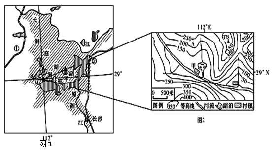1、综合题 (26分)图1为“洞庭湖平原示意图”,图2为该区域M地放大的等高线地形图。读图及下列材料,回答有关问题。
