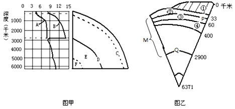 4、综合题  读“地震波速度与地球内部构造图”回答下列问题。