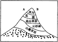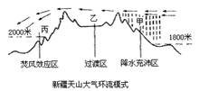 1、综合题 读“天山垂直自然带分布图”,完成下列各题。