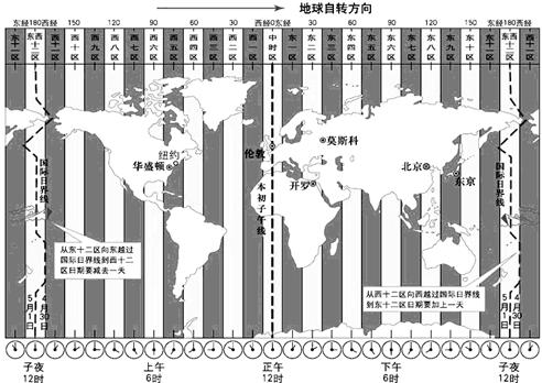 2、综合题 读“时区和国际日界线”图,回答下列问题: (10分)