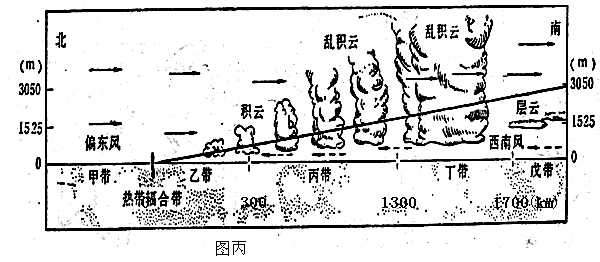 材料一:图甲和图乙是某地不同季节的大气环流图,两图中的粗黑线是热带辐合带。