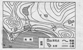 (3)该地区十一五规划中,为促进经济发展,加快城市化进程,拟设立一个建制镇。你认为镇驻地应设在图中A、B、c、D、E、F六个村中的哪一个较为合理?并说明理由。(10分)