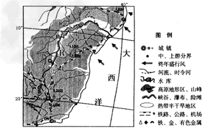 4、综合题 下图示意某国R 河流域及其周边区域。阅读图文资料,完成下列问题??。??